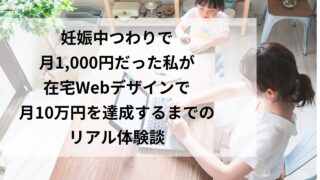 妊娠中つわりで月1,000円しか稼げなかった私が、在宅Webデザインで月10万円を達成するまでのリアル体験談。最初の3,000円、辞めたくなった3か月、業務委託への転機まで正直に書きました。